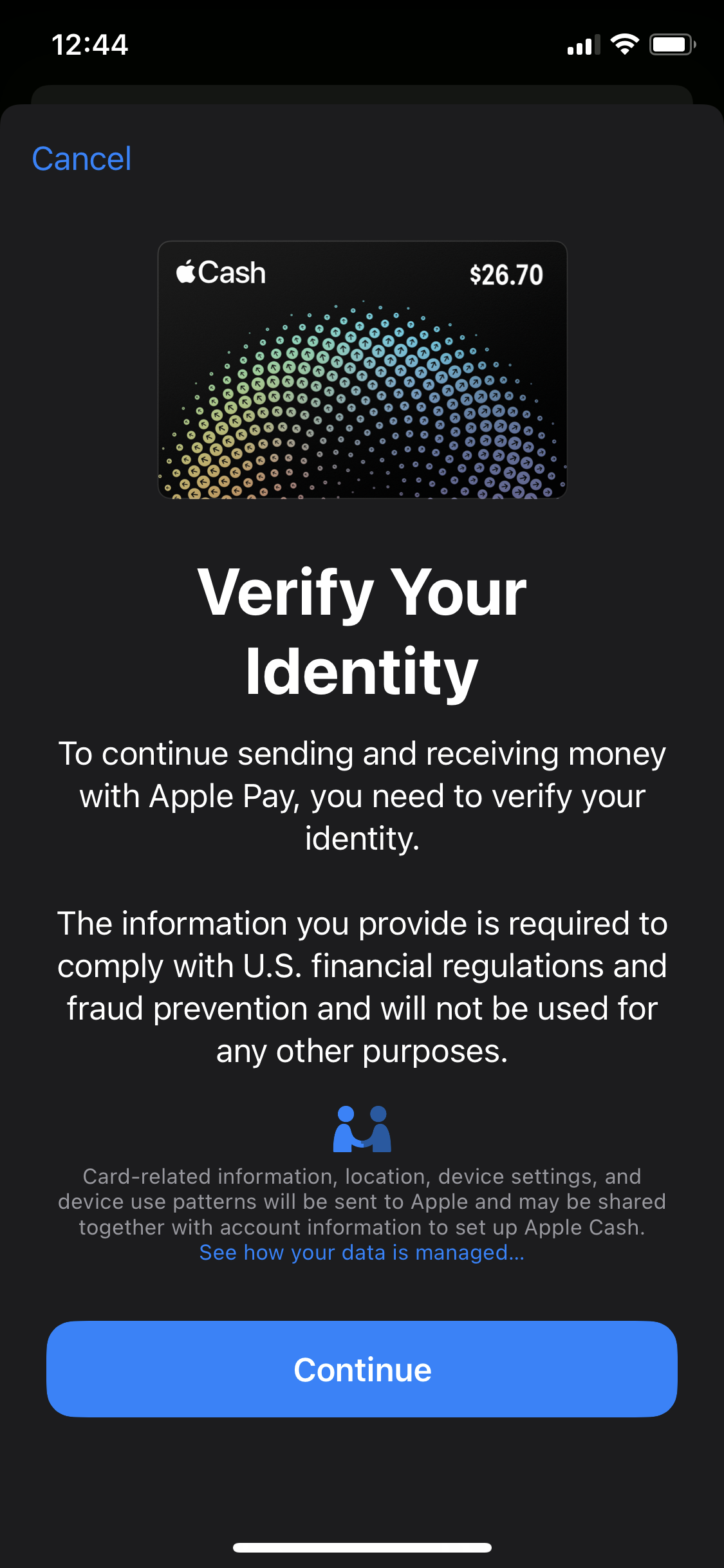Enter your First and Last names. Tap Apple Pay Cash. To verify your identity you must.